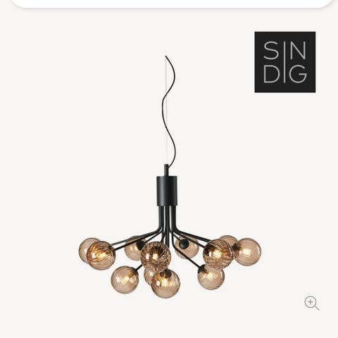 Klassisk form med et moderne uttrykk. 12 dimbare lyskilder følger med! Passer over spisebordet, i en romslig hall eller trappeoppgange. Selges til fastpris + eventuell frakt.