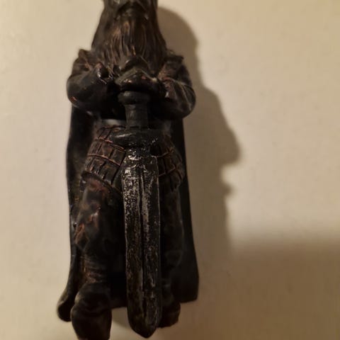 Figur av en engel laget i keramikk med grå og hvit farge. Passer som dekorasjon i hjemmet.