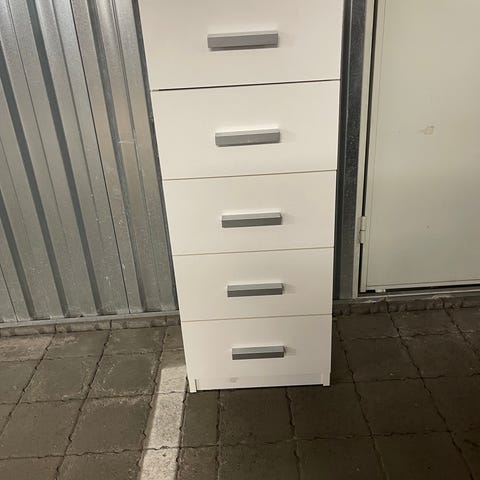 IKEA kommode i hvit farge med flere skuffer for oppbevaring. Passer for ulike rom og oppbevaringsbehov.
