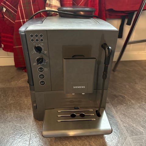Siemens EQ5 Kaffemaskin med melkeskummer selges. Med display. Velg mellom flere forskjellige kaffetyper, fra espresso til Kaffe Creme. Lager nydelig og god kaffe.