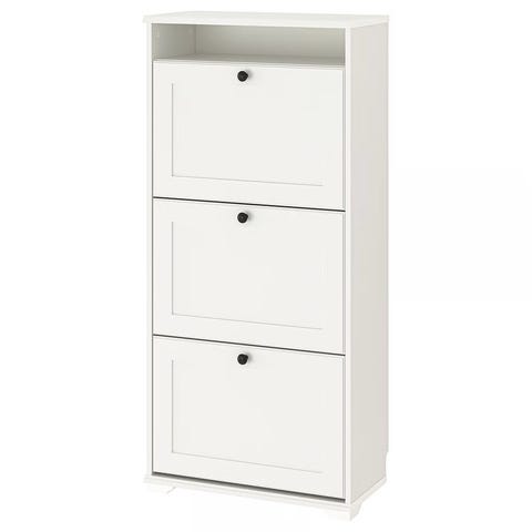 Svart skoskap selges. Brukt i flere år, men lite slitasje. Trolig fra IKEA. Fem rom, plass til 2-3 par i hver.