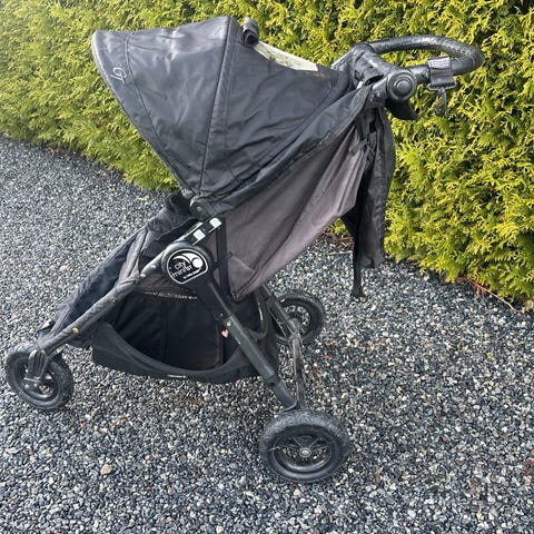 Baby Jogger City Mini barnevogn i svart farge. Barnevognen har tre hjul og er designet for enkel manøvrering. Passer for barn og har sikkerhetssele for trygg bruk.