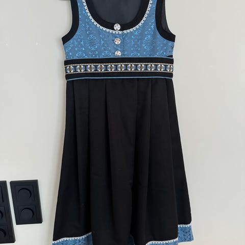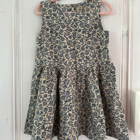 To nydelige kjoler fra wheat og pompdelux i str 98. Kjolen fra wheat med blomstermønster er noe dypere og mørkere i fargen enn det som fremkommer på bilde.