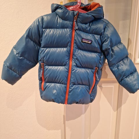Patagonia barnejakke i størrelse 98, unisex. Jakken er laget med dun som isolasjonsmateriale, egnet for å holde barnet varmt i kaldt vær.