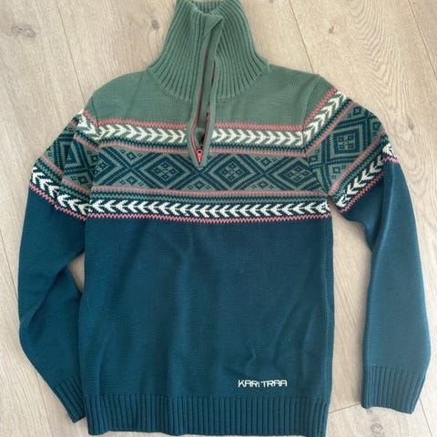 Helt ny Kari Traa genser. Ubrukt med lappen på. 50 %ull, 50 % polysmid Ny pris 1499