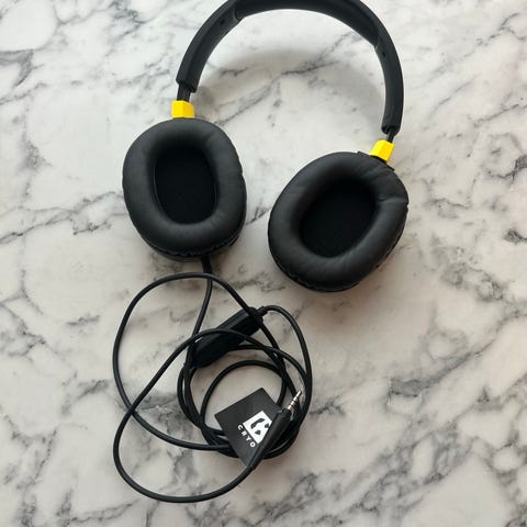 INF Boxer hodetelefoner med Bluetooth og DAB+ funksjonalitet. Hodetelefonene har oransje detaljer og er utstyrt med justerbar hodebøyle, innebygd radio med digital skjerm og kontrollknapper for enkel betjening.