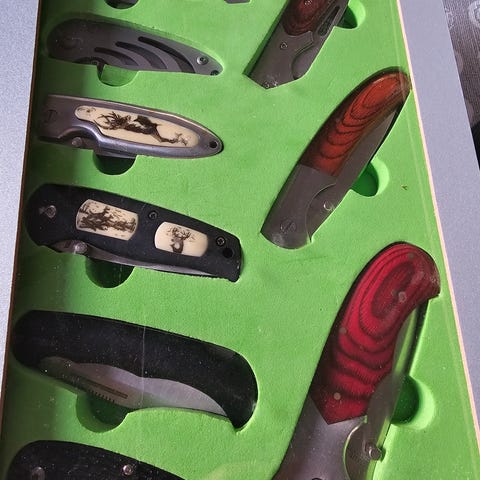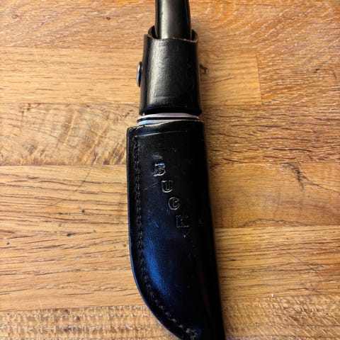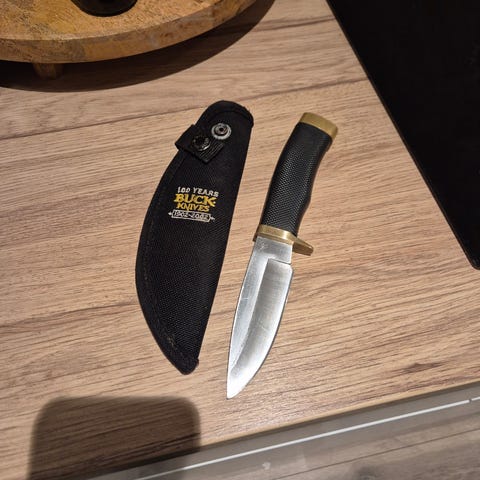 Selger en kvaliteteskniv fra Buck med bukåpner. Kniven er brukt og har noen merker her og der. Eggen er bra og skarp. Gummigrep som er veldig behagelig.
