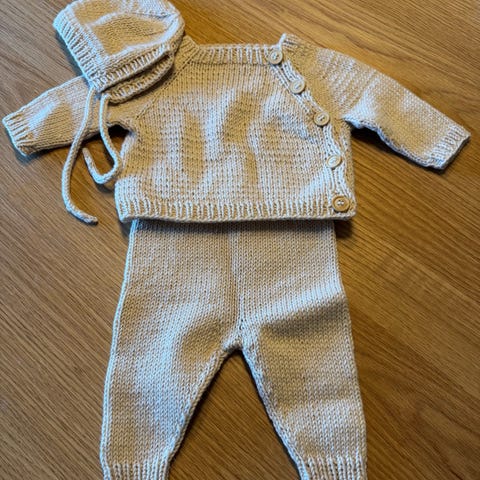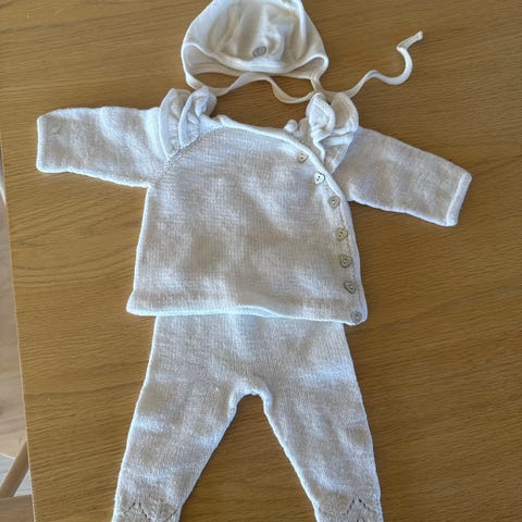 Nydelig hjemmestrikket hentesett i størrelse 0-1 mnd.