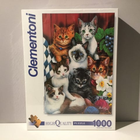 Ravensburger «A Woodland Christmas» puslespill med 2000 brikker. Motivet viser et vinterlandskap med snødekte trær, dyr og juledekorasjoner. Puslespillet har målene ca. 98 x 75 cm når ferdiglagt.