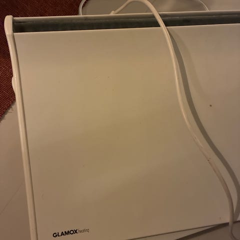 Den ene er 21 cm høy, 93 cm lang og er på 600 W. Enkeltpris: 200 kr