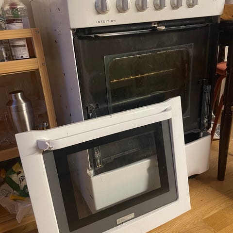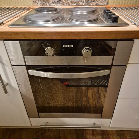 Komfyren er godt brukt, fra dødsbo. Kjøper må vaske komfyren selv, bære den ut av leiligheten og hente selv.
