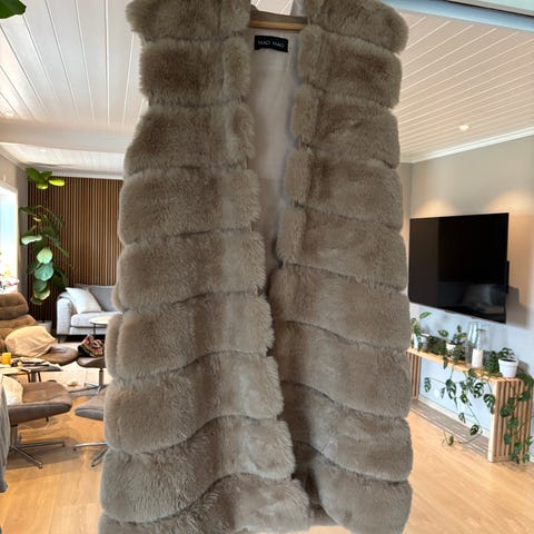 🔥 BEBE vest i sort fuskepels/semsket look