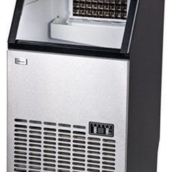 TempTech isbitmaskin i rustfritt stål. Utstyrt med kontrollpanel for størrelse justering av isbiter og en dør som åpnes for tilgang til isbiter.