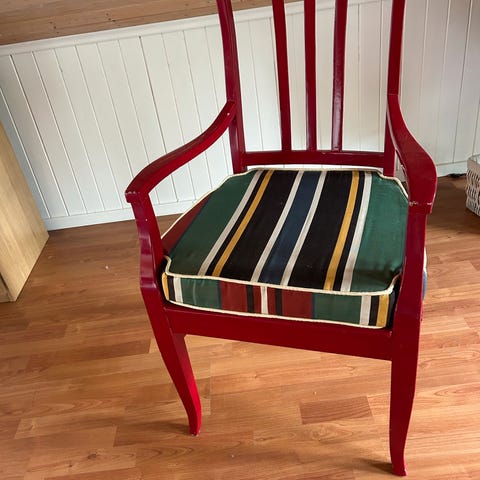 Grønn fløyelsstol med gullpute