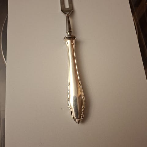 Begge deler i pent brukt stand, blanke og uten anmerkninger av betydning (normale bruksspor må påregnes). Delene er lett pusset, og kan nok bli enda blankere med ytterligere pussing.
