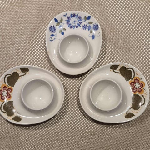 Selger tre blå eggeglass fra Figgjo flint.