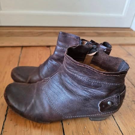 Svarte sko med litt høye hæler. Kan minne litt om cowboy sko, men det er det ikke altså. pent brukte