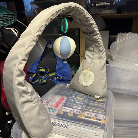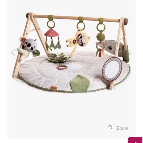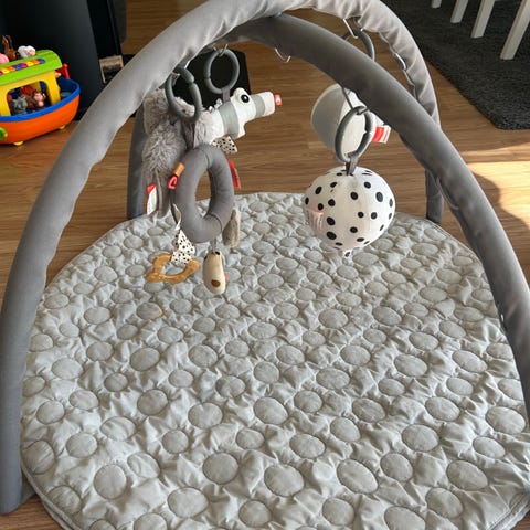Done by deer babygym. Kan flyttes rundt og tilpasses sånn man ønsker. Det er også mulig å henge ulike leker i strikkene i buen.