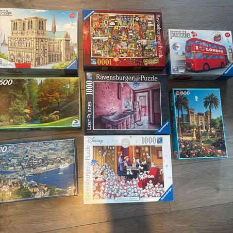 3 Ravensburger puslespill selges samlet kr. 350,- eller individuelt 100,- for 1000, 150,- for 3000. Må hentes i Trondheim.