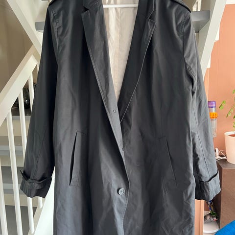Sort jakke ; lengde 77 cm. Bredde målt over skuldrene mål bak er 52 cm .