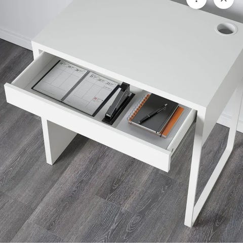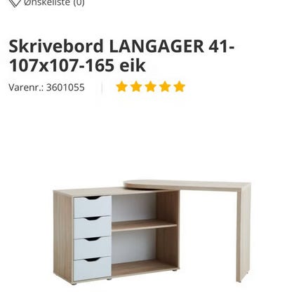 Pent brukt skrivebord/kommode fra jysk! Den er ute av produksjon så ikke mulig å få tak i lengre. Vært helt super fordi skrivebordet er bra høyde, men kan pakkes bort når man ikke bruker det. Nypris var 2500kr