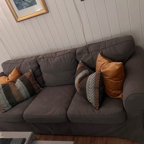 En veldig komfortabel sofa, trekkene på putene er avtagbare.