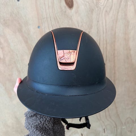 Samshield Shadowmatt sparkling Swarovski topp - regular cut. Størrelse medium 55-58 cm. Hjelmen er aldri brukt da hun som fikk den sluttet med hest kort tid etter. Den har ligget ubrukt i et knapt år i en vurderingsperiode med tanke på hest eller ikke hest. Ny pris 8300,-.