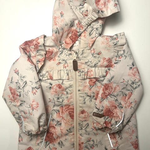 Pen og tynn jakke fra Newbie. Passer best til vår og sommer. Str. 80. En liten flekk like ved venstre bryst, ikke forsøkt fjernet.