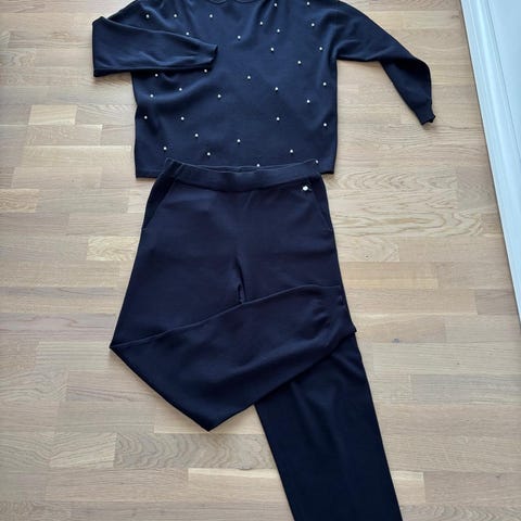 Halloween-kostyme i str 128. Tynn genser med hette og tynn bukse med strikk. Godt brukt, noen løse tråder er klippet av. Fungerer godt som kostyme.