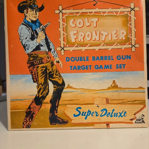 2 like leke pistoler. Montana Jack. Made in Italy. Kruttlapp. Veier ca. 400 gram pr stk. Fra 70- tallet. 250- pr.stk. Kan sendes liten pakke.