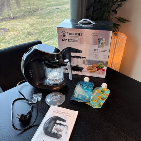 Twistshake 6in1 food processor med flere funksjoner for tilberedning av mat. Designet for å hjelpe med matlaging og oppbevaring av babymat eller annen mat.