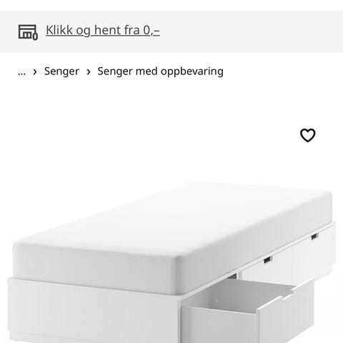 IKEA Nordi seng med oppbevaringsskuffer 90x200 cm hvit