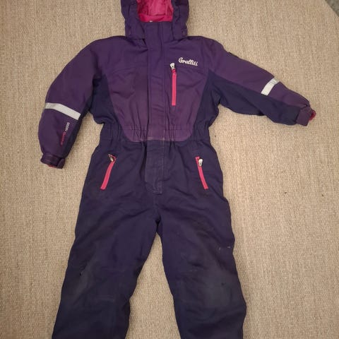 Godt brukt vinterdress fra Gullkorn str 116. God og varm og har mye bruk igjen. Regleksene nederst på bena er borte (er reflekser lenger opp på dressen også). Ene knappen til ene fotstrikken er borte, slik at dressen har bare en fotstrikk nå.
