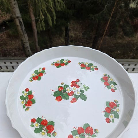 Selger stor fat, 31 cm i diameter, ca 4,2 dypt. Portmeirion, navn: Variations, Susan Williams-Ellis. Pent og lite brukt, fint i glassuren. Har også dype tallerkner samt kaffekopp m skål i samme, se mine andre annonser.