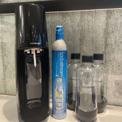 Pent brukt brusmaskin selges billig da den ikke brukes lenger. Bruker generiske gasspatroner som vist på bilde. Mangler flasker.