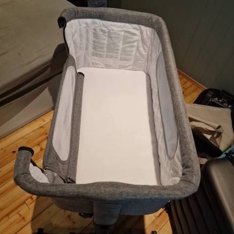 Moweo bedside crib designet for bruk ved siden av sengen. Noen flekker, derfor selges den billig