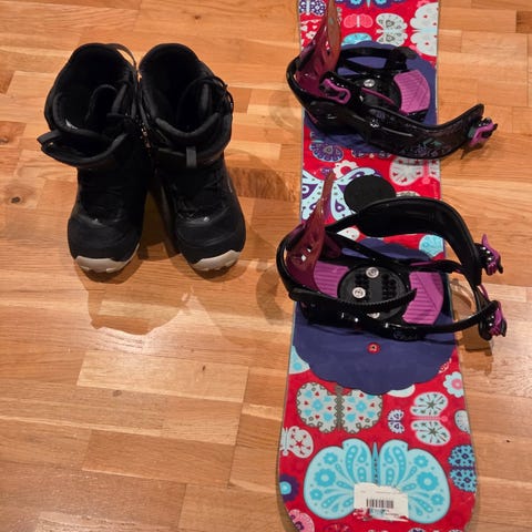 130 cm snowboard, lite brukt og støvler str 40, men tror de er litt små i størrelsen, mer str 37/38. Innersålen måler 24,5 cm.