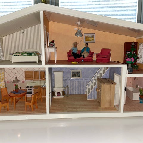 Lundby dukkehus i to etasjer med lysende juletre!