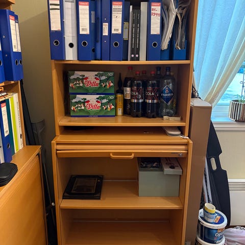 Kommoden er brukt, og har noen synlige bruksspor og merker (se bilde), men skuffene fungerer som de skal.
