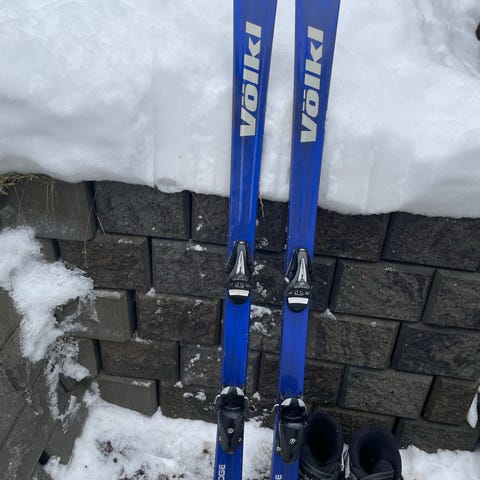 Völkl alpinski 118 cm med bindinger selges for 500,-. Skiene er i god stand og kun brukt 1,5 sesong. Selger også Head alpinsko str 200-205 (31-32) for 300, - . 700,- for både ski og sko.
