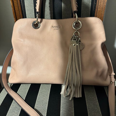 GUESS Dame Veske i svart farge. Vesken har flere rom og lommer, inkludert et hovedrom med glidelås og en utvendig lomme med glidelås. Den har både håndtak og justerbar skulderrem for ulike bærevalg. Helt ny .