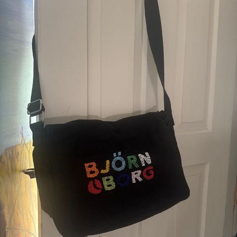 Nike duffelbag /treningsbag i stoffmateriale. Bagen har en romslig hovedlomme med glidelås, justerbar skulderrem og bærehåndtak. Egen lomme til sko under. Brukt av ett barn :)