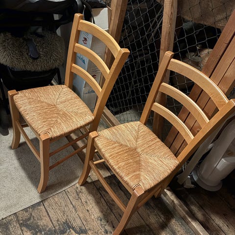 Selger 6 pent brukte stoler. Jeg er usikker på om det er jærstoler eller vintage IKEA Roberto, men de er uansett veldig fine. Selges samlet og må hentes i Sandvika. Kom gjerne med bud :)