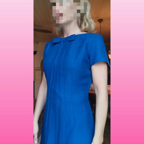 Kjempefin vintage kjole i str 40. Vil si det er en medium. Merket: Tinetta. Foret i brøstet, men ikke på ermene. Lang glidelås i ryggen. Splitt nederst på ermene med trykknapper hvis der ikke er ønskelig. Nydelig innsving i livet.
