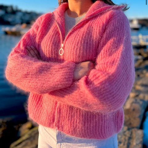 NY Arnie Says cardigan i størrelse S, grå farge, laget av bomull. Cardiganen har knapper foran og et kabelstrikket mønster. Nydelig kvalitet.