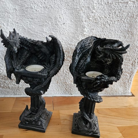 vegglysestaker laget i svart metall. Hver lysestake har plass til to lys og er designet for montering på vegg. Passer til dekorasjon og belysning i hjemmet.