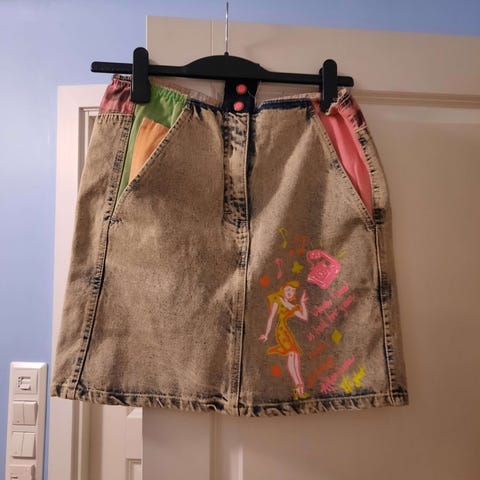 Pent brukt skjørt med to volanger. Sommerlig med rosa og ferskenfarget blomster.