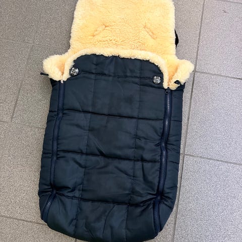 God og varm saueskinnspose med kortklipt ull fra Eisbärchen, som har mange muligheter til varmeregulering. Kort modell som passer fra nyfødt-størrelse. To glidelåser, en på hver side, slik at overdelen kan brettes halvveis ned eller løsnes og fjernes het. Veldig praktisk hvis man f.eks. skal inn på kjøpesenter med vogna. Selges billig da da den er noe skadet i den ene festetråden, der sømmen er raknet litt. Må hentes i Drammen, sendes ikke.