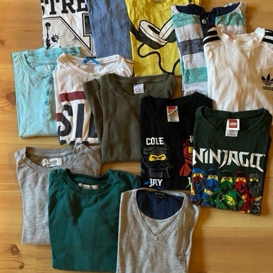 Pent brukte overdeler. Ingen synlige hull eller merker.