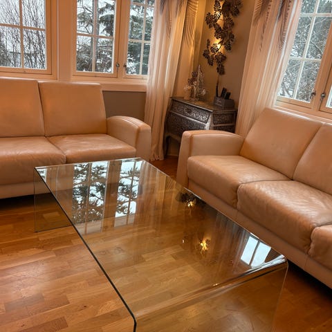 Brun 3seter skinnsofa gis bort mot henting